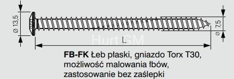 Wkręty SFS z łbem soczewkowym FB-FK 7,5x112 mm