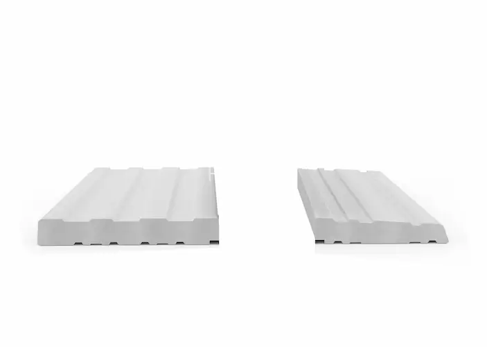 Elementy wykonane są z twardego polistyrenu ekstrudowanego XPS o bardzo niskiej nasiąkliwości i wysokiej stabilności wymiarowej. Montaż odbywa się za pomocą fabrycznej taśmy samoprzylepnej umieszczonej od czoła – nie wymaga wiercenia ani klejenia „na mokro”. Dokładki są rozłączone, dzięki czemu można je zamontować dopiero po ustawieniu ramy okna, co gwarantuje precyzyjne dopasowanie i czysty montaż.