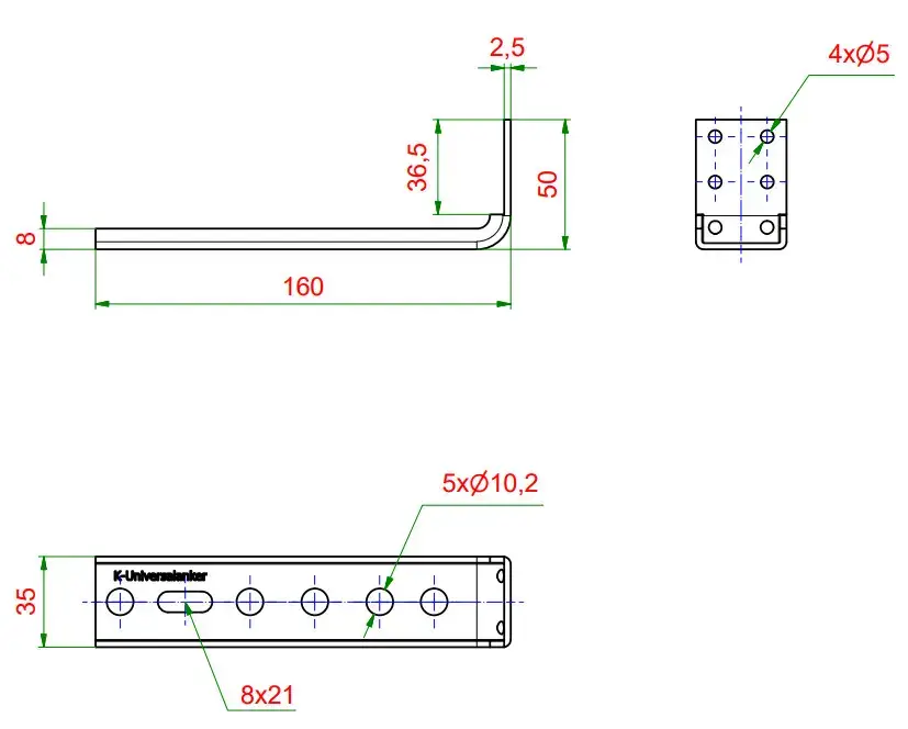 Kątownik F-U-P FMW 50x160x2,5 do zamocowania bez oklockowania