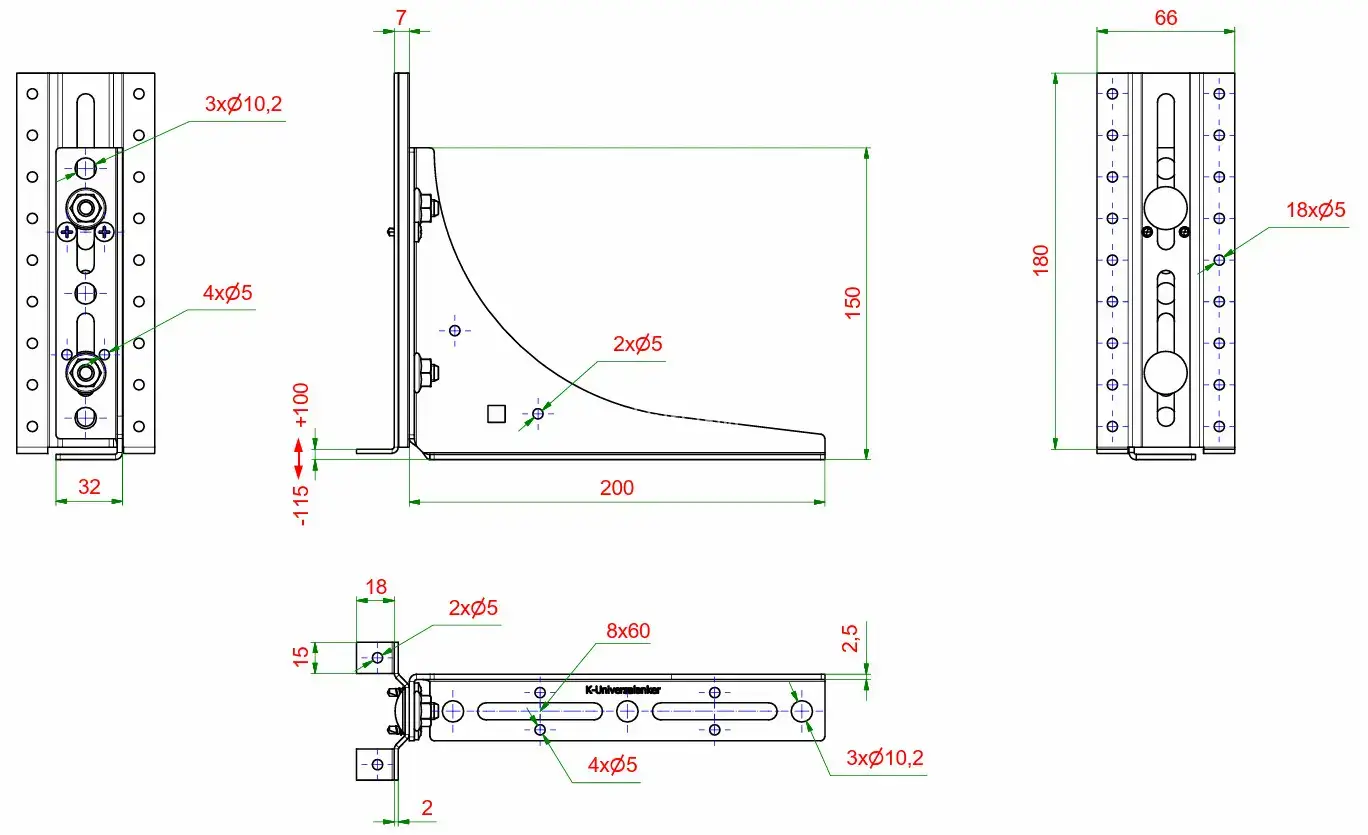Wspornik BAP-SLW służący do wysuwania dużych obciążeń sięgających do podłogi. Montaż pod kątem prostym z jednoczesnym podparciem konstrukcji na wysokim poszerzeniu. Zapewnia pewne mocowanie do płyty betonowej.