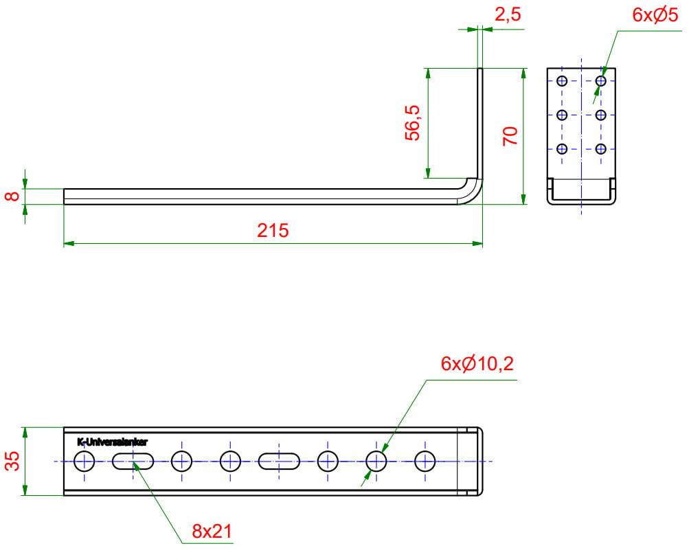 Kątownik F-U-P FMW 70x215x2,5 do zamocowania bez oklockowania