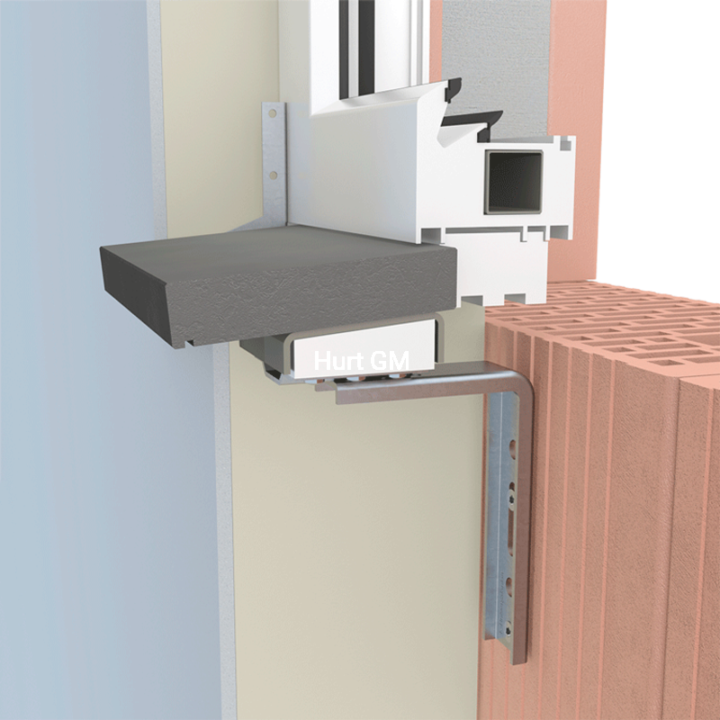 Uchwyt termiczny do parapetu kamiennego Zasada działania uchwytu termicznego do parapetu kamiennego jest identyczna, jak w przypadku uchwytu termicznego do parapetu aluminiowego. Wskutek większej masy parapetu kamiennego uchwyt termiczny jest dostarczany tylko w połączeniu z konsolą do montażu okien typu FMW. Podczas montażu uchwyt regulowany należy przykleić do parapetu ceglanego w celu zagwarantowania solidnego zamocowania. W przypadku dłuższych występów parapetu konieczne są dwa uchwyty regulowane. Podczas montażu parapetu kamiennego w charakterze pomocy montażowej można użyć bezpośredniego uchwytu parapetu aluminiowego. Zapewnia on pewne przyleganie z lewej i prawej strony oraz jednolity spadek.
