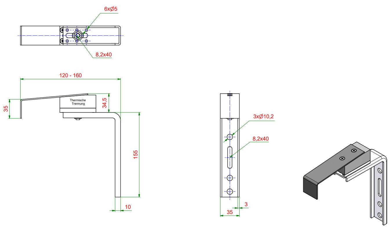 Uchwyt termiczny T-AFBH 120-160 do parapetu aluminiowego
